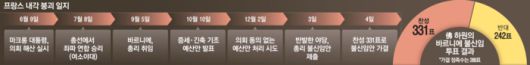 4일(현지시간) 미셸 바르니에 프랑스 총리 불신임안이 가결되자 경제·금융위기론이 터져 나왔다. 월스트리트저널(WSJ)은 “프랑스 경제가 통제 불능 상태가 될 위험이 있다”고 지적했다. 워싱턴포스트(WP)는 “투자자들이 불안해하며 정치위기가 금융위기 공포를 불러일으키고 있다”고 분석했다.