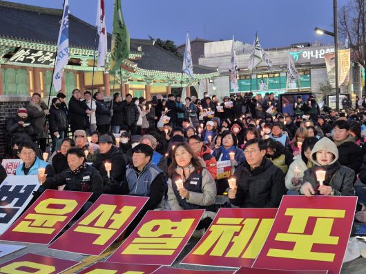 지난 4일 전북 전주시 풍패지관(객사) 앞에 모인 시민들은 비상 촛불집회를 열고 “불법 계엄 내란범 윤석열을 즉각 체포하라”고 목소리를 높였다. 천경석 기자 |
