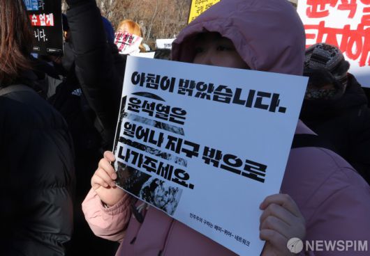 [서울=뉴스핌] 양윤모 기자 = 한국여성단체연합이 6일 오전 서울 광화문광장 이순신 동상 앞에서 대한민국 헌정질서와 민주주의를 파괴한 내란죄 범죄자 윤석열을 파면하고, 그가 일으킨 내란죄에 대해 엄정한 처벌을 받을 것을 요구하는 '여성계 시국선언' 기자회견을 진행했다. 2024.12.06 yym58@newspim.com