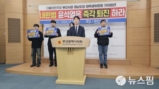 민주당 부산시·경남도당 대학생위원회는 6일 오후 2시 부산시의회 3층 브리핑룸에서 기자회견을 갖고 "윤석열 대통령의 불법적 비상계엄 선포를 강력히 규탄한다"고 밝혔다.