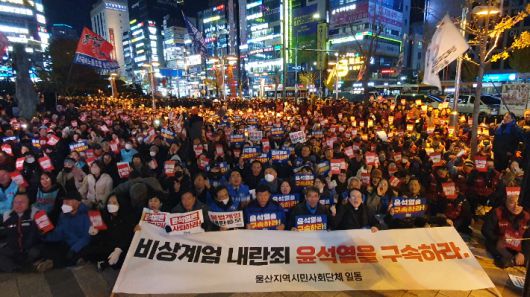 또 윤석열 퇴진 울산운동본부는 지난 4일부터 남구 삼산동 롯데백화점 앞 광장에서 윤 대통령의 체포와 구속을 촉구하는 울산시민대회를 진행하고 있다.