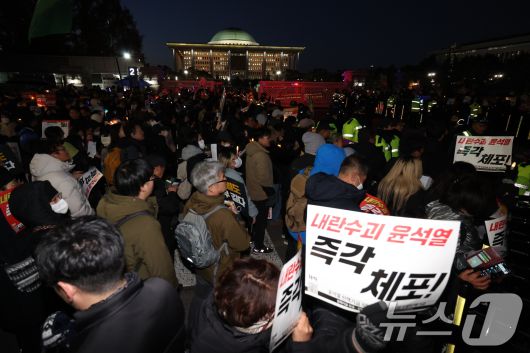 국회 앞 모인 시민들 "윤석열 탄핵"