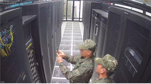 국회 행정안전위원회는 지난 3일 계엄령 선포 당시 선거관리위원회에 투입된 계엄군이 선관위 시스템 서버를 촬영하는 장면이 담긴 CCTV를 6일 공개했다. 국회 행정안전위원회 제공 |