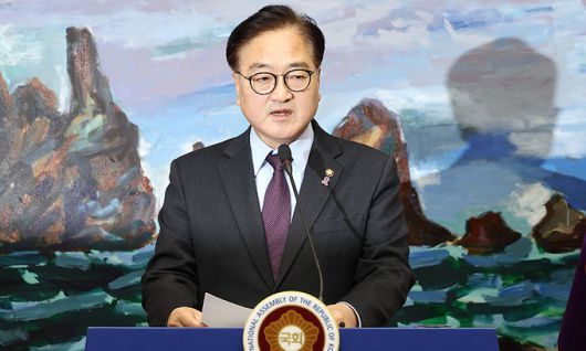 우원식 국회의장이 6일 서울 국회 접견실에서 긴급 담화문을 발표하고 있다. 연합뉴스 |