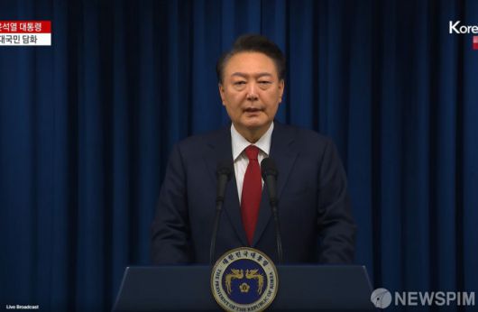 [서울=뉴스핌] 박성준 기자 = 윤석열 대통령은 7일 대국민담화를 통해 비상계엄 선포와 관련해 "많이 놀라셨을 국민 여러분께 진심으로 사과드린다"며 "계엄 선포와 관련하여 법적, 정치적 책임 문제를 회피하지 않겠다"고 했다.
