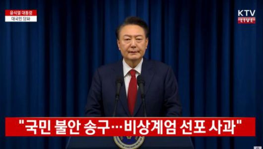 이날 윤 대통령은 대국민 담화를 통해 "이번 비상계엄 선포는 국정 최종 책임자인 대통령으로서의 절박함에서 비롯됐지만, 그 과정에서 국민들께 불안과 불편을 끼쳐드렸다"고 밝혔다.