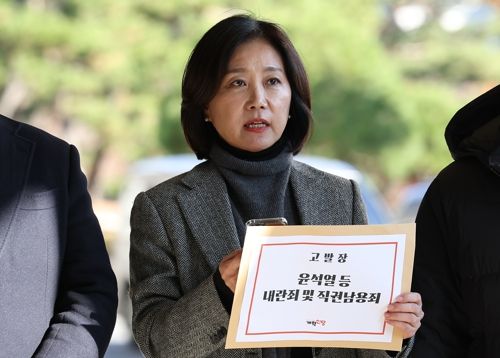 개혁신당 허은아 대표가 지난 4일 오후 서울 서초구 서울중앙지방검찰청에서 윤석열 대통령에 대한 내란죄 고발장을 제출하기 전 입장을 밝히고 있다. 연합뉴스 |