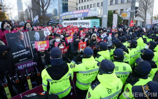 [서울=뉴스핌] 최지환 기자 = 윤석열 대통령 탄핵소추와 '김건희 특검법' 재표결을 앞둔 7일 오후 서울 여의도 국회 앞에서 시민들이 윤석열 대통령 탄핵을 요구하며 시위를 하고 있다. 2024.12.07 choipix16@newspim.com