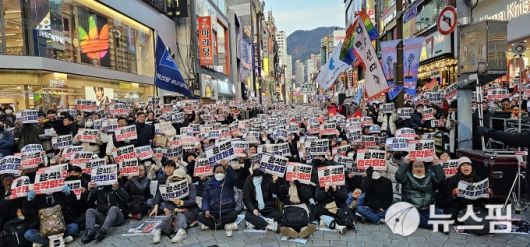 이날 오후 5시 부산 서면 쥬디스백화점 일대에는 지역 시민·사회 단체로 구성된 윤석열 정권 퇴진 비상부산행동이 주최한 윤석열 즉각 퇴진 부산 시민대회에 5000여 명이 넘는 시민들이 몰려들면서 인산인해를 이뤘다.