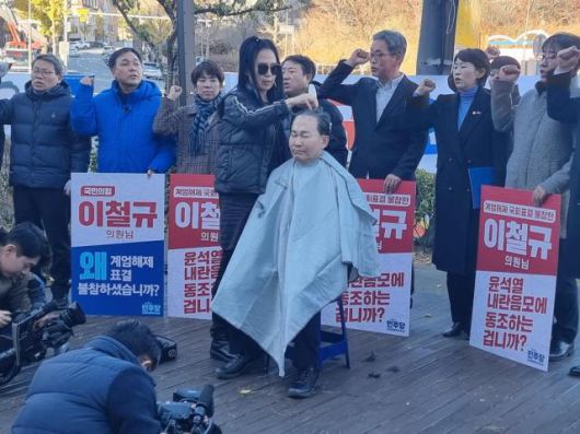 이날 집회에서 민주당 측은 성명서를 낭독하며 윤석열 대통령의 비상계엄 선포가 민주주의의 근본을 훼손하는 행위라고 주장했다. 이 자리에서 이정훈 민주당 동태삼정 지역위원장이 ‘삭발’을 했다.