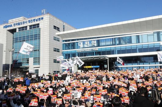 이날 주최 측이 준비한 피켓 800장은 집회 시작과 함께 모두 동났다. 열차를 타기 위해 대전역을 오가는 이용객 일부도 발길을 멈추고 집회에 동참하는 모습도 보였다. 주최 측은 이날 최소 2000명 이상이 모인 것으로 추산했다.