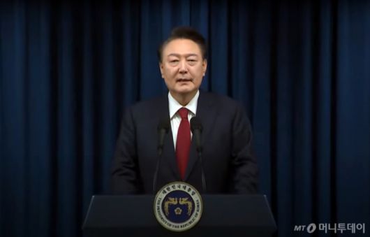 [서울=뉴시스] 최진석 기자 = 윤석열 대통령이 7일 오전 서울 용산 대통령실에서 대국민 담화를 하고 있다. (사진=KTV 캡처) 2024.12.07. photo@newsis.com *재판매 및 DB 금지 /사진=최진석 |