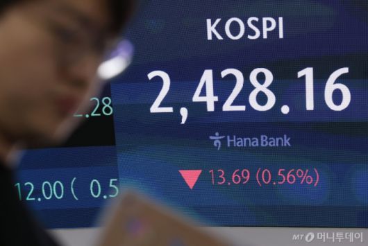 지난 6일 오후 서울 중구 하나은행 딜링룸 전광판에 지수가 표시되고 있다. /사진=뉴시스 |