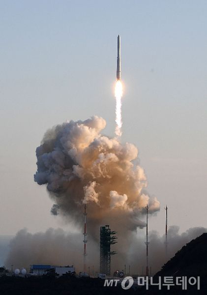 한국형 발사체 누리호(KSLV-ll)가 2022년 6월 21일 고흥군 나로우주센터 제2발사대에서 화염을 내뿜으며 힘차게 날아오르고 있다. 사진=사진공동취재단 |