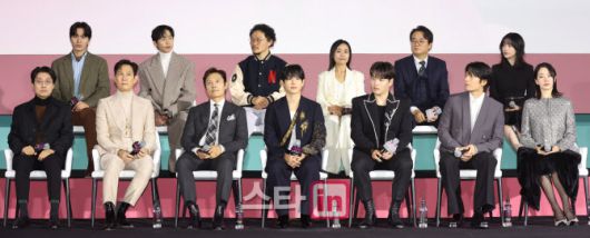 [이데일리 스타in 이영훈 기자] 황동혁 감독과 배우 이정재, 이병헌, 임시완, 강하늘, 위하준, 박규영, 이진욱, 양동근, 강애심, 박성훈, 이서환, 조유리가 21일 오후 서울 중구 DDP 아트홀에서 열린 넷플릭스 드라마 '오징어게임 시즌2' 제작발표회에서 포즈를 취하고 있다.