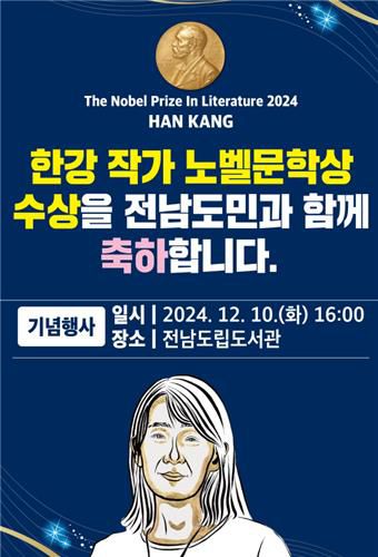 전남도는 노벨문학상 시상식이 열리는 10일 오후 4시 전남도립미술관에서 도민 축하 행사를 연다.