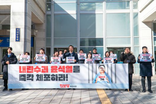 [부산=뉴시스]원동화 기자 = 진보당 부산시당이 12·3 비상계엄과 관련해 윤석열 대통령을 비롯한 관련 혐의자들을 즉각 체포하라고 촉구했다.