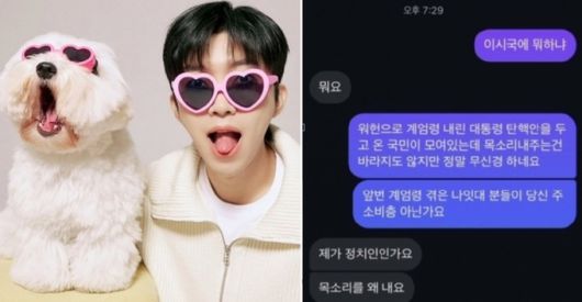 이를 본 A씨는 그에게 DM(다이렉트 메시지)을 보내 “이 시국에 뭐하냐”고 비판했다. 이에 임영웅이 “뭐요”라고 답하자 지인은 “위헌으로 계엄령 내린 대통령 탄핵안을 두고 온 국민이 모여있는데 목소리 내주는 건 바라지도 않지만 정말 무신경하네요”라고 지적했다. 이에 임영웅은 “제가 정치인인가요. 목소리를 왜 내요”라고 응수하는 모습이다. 다만 공개된 SNS 대화의 사실 여부를 의심하는 팬들도 적지 않다. 아직 임영웅 측은 아무런 입장을 밝히지 않고 있다.