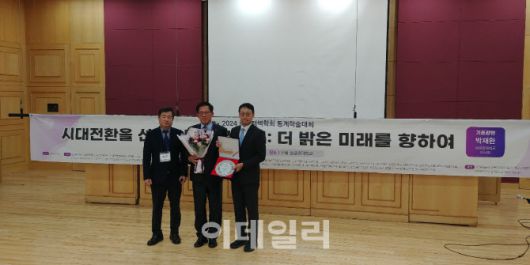 지난 6일 한국정책대상에서 홍형득 정책대상선정 위원장(왼쪽부터), 김훈중 사학연금 연금사업본부장, 윤지웅 한국정책학회 회장이 기념촬영을 하고 있다. (사진=사학연금) |