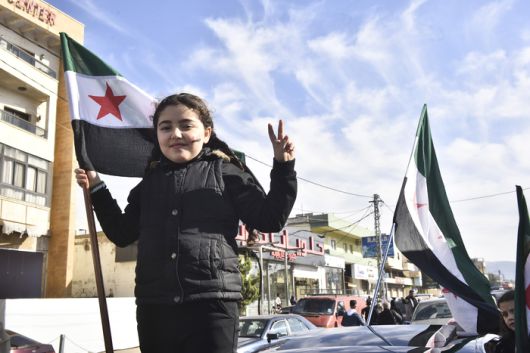 시리아 반군이 수도 다마스쿠스를 탈환하며 알아사드 독재 정권이 붕괴한 8일(현지시간) 레바논 베카 계곡 바엘리아스 마을에서 시리아 난민들이 국기를 들고 환호하고 있다. UPI연합뉴스 |