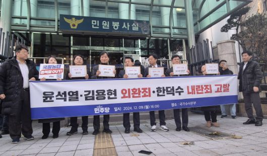 더불어민주당이 9일 오후 경찰청 국가수사본부(국수본)에 윤석열 대통령과 김용현 전 국방부장관을 외환죄로 고발했다. 한덕수 국무총리에 대해선 내란죄로 고발했다. (사진=손의연기자) |