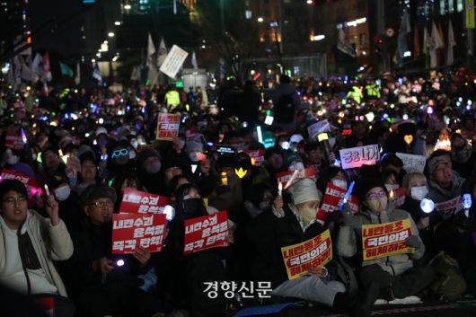 참여연대·전국민중행동 등 시민사회단체는 이날 오후 6시부터 국회 앞에서 ‘내란죄 윤석열 퇴진! 국민주권 실현! 사회대개혁! 범국민촛불대행진’을 열었다. 이들은 두 번째 탄핵소추안 표결이 예정된 오는 14일까지 매일 촛불집회를 열겠다고 밝혔다.