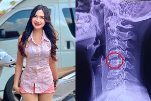 태국 전통가요 가수인 차야다 쁘라오 홈과 그를 사망에 이르게 한 원인으로 지목된 경추 이탈 X선 사진. 사진 방콕포스트 페이스북 캡처 |