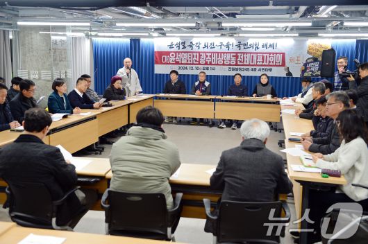 (광주=뉴스1) 이승현 기자 = 광주 100여개 시민사회단체가 모인 윤석열정권퇴진 광주비상행동이 10일 오후 광주 동구 전일빌딩245에서 전체대표자회의를 열고 향후 대응 방안 등에 대해 논의하고 있다. 2024.12.10/뉴스1pepper@news1.krCopyright ⓒ 뉴스1. All rights reserved. 무단 전재 및 재배포, AI학습 이용 금지.