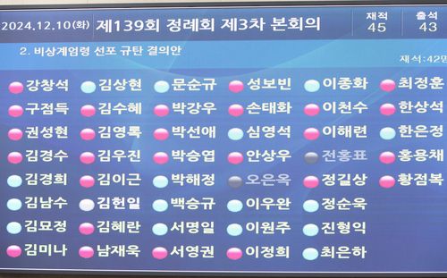 시의회는 10일 오후 열린 제139회 정례회 제3차 본회의에서 민주당 의원 9명이 발의한 비상계엄령 선포 규탄 결의안에 대해 표결을 진행해 해당 안건을 최종 부결 처리했다.