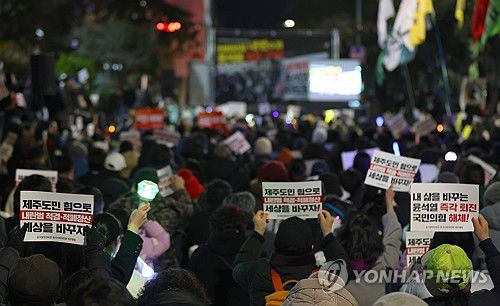 (제주=연합뉴스) 전지혜 기자 = 윤석열 대통령 퇴진을 촉구하는 집회가 제주에서 연일 열리고 있다.