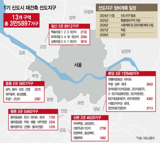 분당신도시에서는 샛별마을 2843가구(동성·라이프·우방·삼부·현대빌라)와 양지마을 4392가구(금호1·청구2·금호한양3·5·한양5·6·금호청구6), 시범단지 3713가구(우성·현대·장안건영3) 등 3개 구역, 1만948가구가 선도지구로 선정됐다.