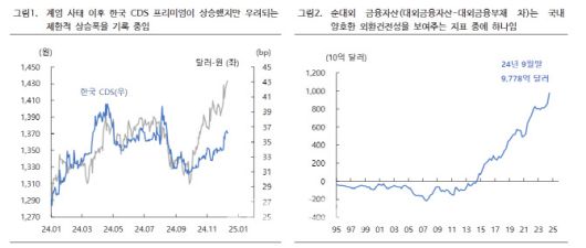 이에 대해 박 연구원은 “그나마 달러·원환율과 높은 상관관계를 보이는 국내 CDS 프리미엄은 계엄 사태 이후 다행히 소폭의 상승세만을 보이고 있다”며 “국내 원화 가치의 펀더멘탈을 보여주는 외환건전성 지표들도 대부분 양호한 상황”이라고 짚었다.
