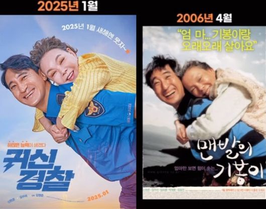 영상에는 ‘귀신경찰’ 포스터 속 신현준과 김수미가 2006년 개봉한 ‘맨발의 기봉이’ 포스터와 똑같은 포즈를 취한 채 환한 미소를 짓고 있는 모습이 눈길을 끈다. 두 포스터 속 신현준은 김수미를 등에 업은 채 다정한 분위기를 띠고 있다.