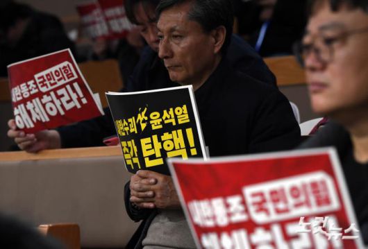 11일 오후 서울 종로구 향린교회에서 ‘윤석열 즉각 퇴진·사회대개혁 비상행동 발족 기자회견’ 이 열리고 있다.