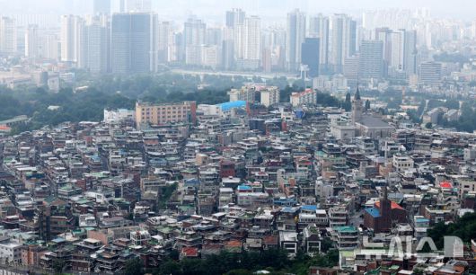 [서울=뉴시스] 추상철 기자 = 5일 오후 서울 용산구 남산에서 빌라가 보이고 있다. 정부는 비 아파트 수요와 공급 확대를 위해 신축빌라, 오피스텔 등을 추가로 구입한 다주택자에 대해 '1가구 1주택' 특례를 주는 방안인 주택공급대책을 이르면 이번주에 발표할 예정이다. 2024.08.05. scchoo@newsis.com |