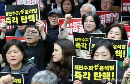[서울=뉴스핌] 최지환 기자 = 시민사회단체 관계자들이 11일 오후 서울 종로구 향린교회에서 윤석열 즉각 퇴진·사회대개혁 비상국민행동 준비위원회 발족 기자회견을 열고 있다. 2024.12.11 choipix16@newspim.com
