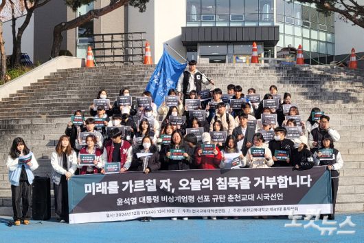 춘천교육대학교 총학생회와 재학생들은 11일 교내에서 시국선언을 열고 비상계엄 선포 규탄과 윤 대통령 탄핵을 촉구했다.