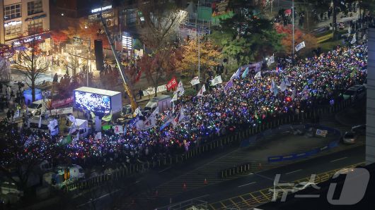 (서울=뉴스1) 김진환 기자 = 11일 오후 서울 영등포구 여의도 국회 앞에서 '윤석열 즉각 탄핵 구속 촉구 촛불문화제'가 열리고 있다. 2024.12.11/뉴스1kwangshinQQ@news1.krCopyright ⓒ 뉴스1. All rights reserved. 무단 전재 및 재배포, AI학습 이용 금지.