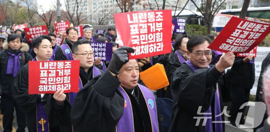 (서울=뉴스1) 임세영 기자 = 한국기독교장로회가 12일 서울 영등포구 여의도 국회 인근에서 민주와 헌정질서 보호를 위한 긴급시국기도회를 마친 뒤 윤석열 대통령 탄핵 촉구 행진을 하고 있다. 2024.12.12/뉴스1seiyu@news1.krCopyright ⓒ 뉴스1. All rights reserved. 무단 전재 및 재배포, AI학습 이용 금지.