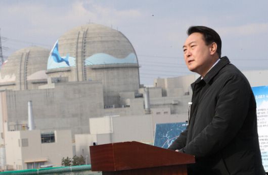 2021년 12월29일 당시 국민의힘 대선 후보였던 윤석열이 경북 울진군 북면 한울원자력본부를 방문해 건설이 중단된 상태였던 신한울원전 3, 4호기 부지를 둘러 본 뒤 발언하고 있는 모습. 울진/김봉규 선임기자 bong9@hani.co.kr |
