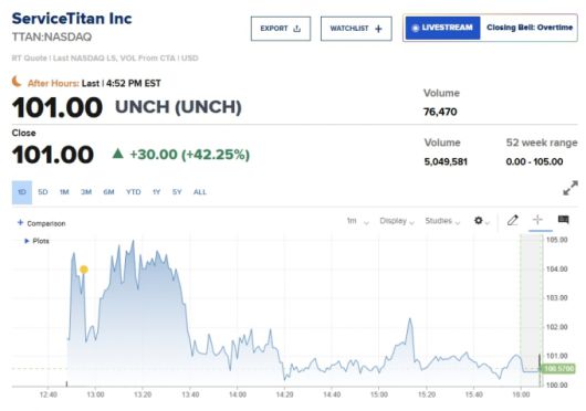 소프트웨어 기업인 서비스 타이탄(ServiceTitan)이 이날 상장에 성공해 주당 71달러의 공모가 보다 42% 이상 높은 101달러로 거래를 마쳤다. 회사는 6억 2500만 달러의 모금을 성공적으로 마쳤고, 첫 날 거래도 성공적으로 마무리하면서 미국 증시의 활기찬 모습을 증명했다.