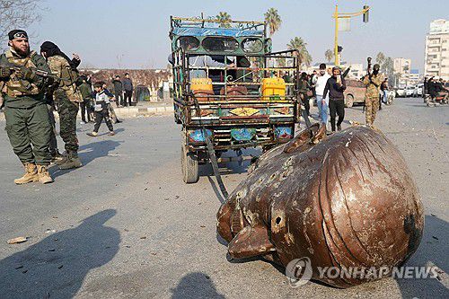 시리아 정권 붕괴 후 파괴된 아페즈 알아사드 전 대통령의 동상 |