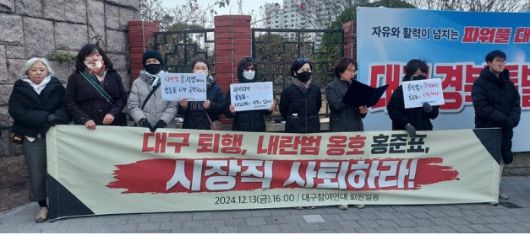 대구 시민단체가 윤석열 대통령 탄핵에 반대하는 입장을 연일 쏟아내고 있는 홍준표 대구시장을 강하게 비판했다.