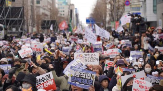 '12·3 비상계엄 사태' 윤석열 대통령의 탄핵소추안 2차 투표를 앞두고 5·18민주광장과 금남로에서 열린 제6차 광주시민 총궐기대회에는 3만여명의 인파가 운집했다.