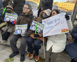 [중부매일 김미정 기자] 윤석열 대통령 탄핵 소추안 재표결이 진행된 14일 오후 충북도청 서문 앞에서 열린 '윤석열 퇴진! 민주·평화·평등 사회 대전환 충북도민 총궐기대회'에서 한 가족이 자필로 작성한 플래카드를 들고 퇴진을 외치고 있다. 플래카드에는 '윤방구, 살려는 줄게, 자리에서 내려와"라는 내용이 적혀있다. 충북시민사회단체연대회의 주최로 열린 이날 충북 촛불문화제에는 오후 4시반 현재 주최측 추산 9천명, 경찰 추산 5천명이 모였다. 14일 충북도청 서문 앞 "윤석열 대통령 탄핵" 충북,촛불문화제,윤석열,탄핵