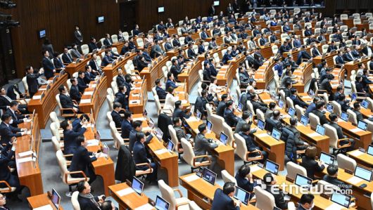 제419회국회(임시회) 제4차 본회의가 14일 서울 여의도 국회에서 열렸다. 대통령 (윤석열) 탄핵소추안이 찬성 204표로 통과되고 있다. 이동근기자 foto@etnews.com [Copyright © 전자신문. 무단전재-재배포금지]