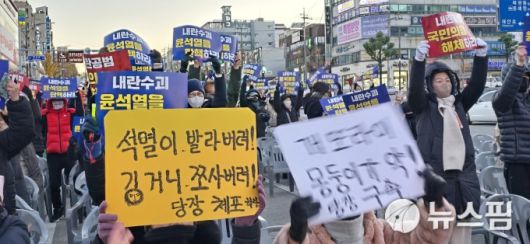 [동해=뉴스핌] 이형섭 기자 = 강원 동해삼척시민들이 14일 동해시 천곡동 이주민상가 앞에서 윤석열 대통령 탄핵을 요구하는 촛불문화제를 가졌다.