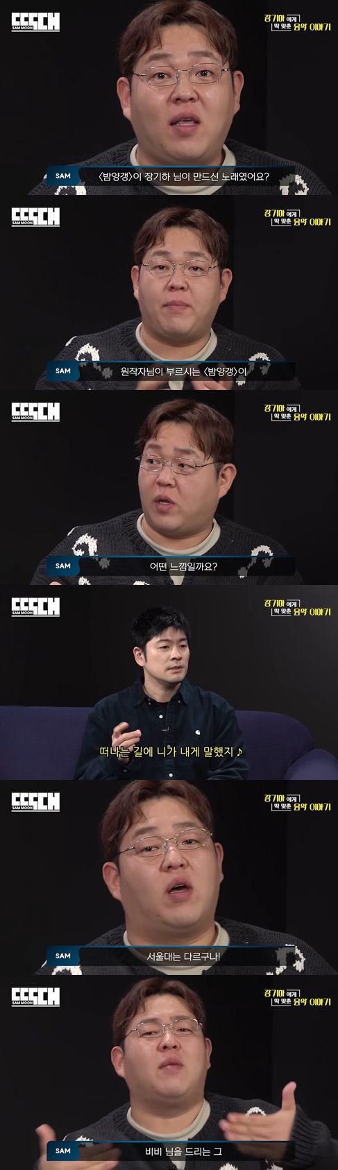 그런가 하면, 샘문은 "'밤양갱'이 장기하 님이 만드신 노래였냐"라며, 금시초문이라는 표정으로 장기하를 긁었다. 이어 샘문의 요청에 따라 장기하는 '밤양갱'의 한 소절을 불렀다.