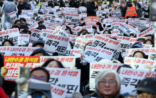 (서울=뉴스1) 이동해 기자 = 윤석열 대통령에 대한 탄핵소추안이 가결된 지 이틀째인 15일 서울 중구 서울시청 인근에서 촛불행동 회원들이 집회를 갖고 헌법재판소의 조속한 탄핵 심판을 촉구하고 있다. 2024.12.15/뉴스1. 무단 전재 및 재배포, AI학습 이용 금지. /사진=(서울=뉴스1) 이동해 기자 |