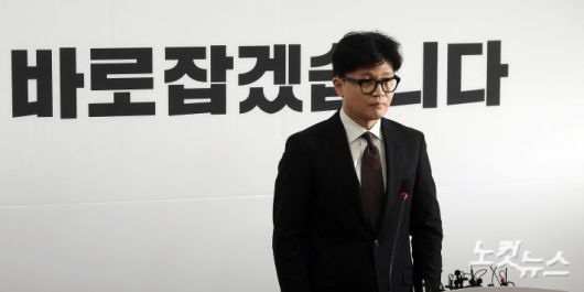 국민의힘 한동훈 대표가 16일 서울 여의도 국회에서 당대표직 사퇴 기자회견을 하고 있다.